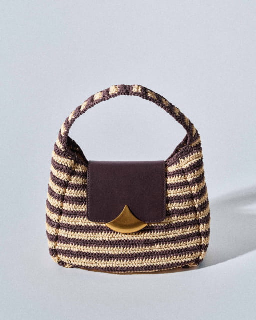 In klein of groot formaat combineert onze Maeluz tas de ambachtelijke uitstraling van een gehaakte vlechttechniek met de verfijnde afwerkingen van de leren flap, afgewerkt met onze exclusieve sluiting. De ideale metgezel voor zonnige dagen.