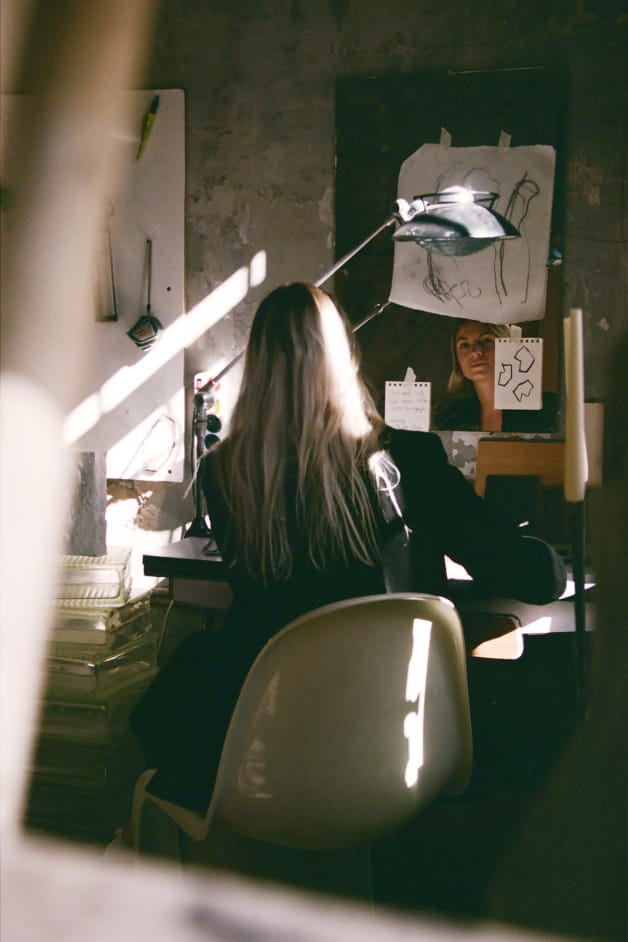Mijn ochtendroutine begint altijd met een goed kopje thee en een inspirerende playlist. Wat mijn creatieve aanpak betreft, begin ik steevast met sessies van houtskooltekeningen. Ik werk vaak volgens dezelfde methode. Meestal ontstaat het creatieve idee heel snel, in een opwelling.