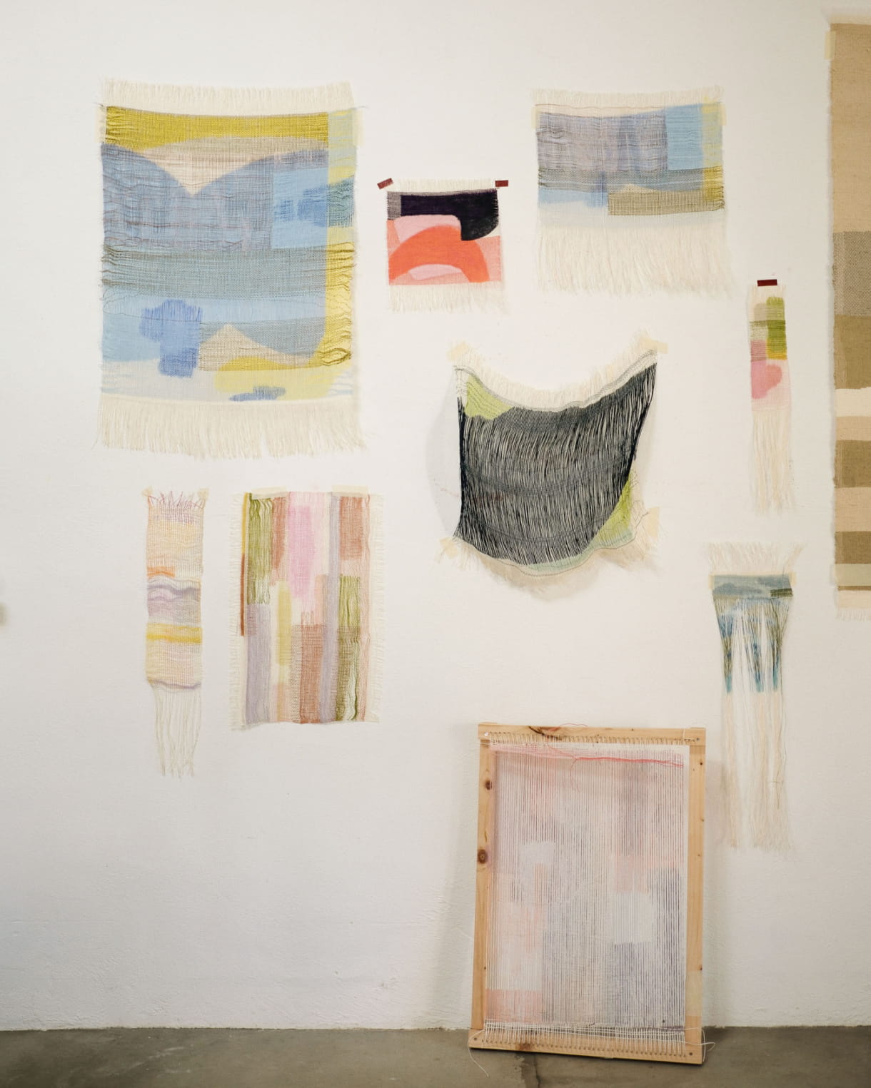 Momenteel onderzoek ik nieuwe diktes en kwaliteiten van garen om meer textuur en materialiteit in mijn werken te brengen. Ik gebruik een breed scala aan grondstoffen en aarzel niet om mijn weefsels opnieuw te bewerken zodra ze van het weefgetouw zijn gehaald; dit boeit mij des te meer omdat ik momenteel druk bezig ben met onderzoek naar mijn werkinstrument, het weefgetouw. Ik stel me een nieuw, op maat gemaakt gereedschap voor dat mijn bewegingen bij het weven en schilderen nog vrijer zou maken, zodat ik nieuwe, minder beperkte schaalniveaus kan bereiken. Dit is een richting die mij de komende jaren na aan het hart ligt: het vervaardigen van grote geweven stukken, die net zo kleurrijk zijn als altijd en die hun plek in de ruimte volledig innemen.