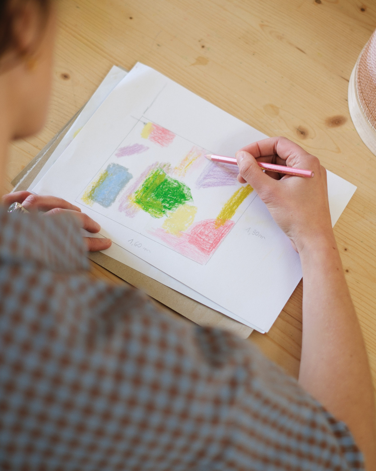Ik ben erg gecharmeerd van de stijl van Sessùn. De rijkdom aan materialen, kleuren en texturen, maar ook de aandacht voor ambachtelijk vakmanschap en de banden met de kunst en de ateliers van kunstenaars. Ik zag daar een verband tussen de wereld van Sessùn en mijn werk: het kleurenpalet, het palet van de kunstenaars. Het leek me vanzelfsprekend: ik wilde mijn werk rond het onderzoek naar kleur voortzetten, op een zeer intuïtieve en spontane manier, net als bij verfpaletten. Vervolgens heb ik twee kleurpaletten samengesteld en twee vrijvormige ontwerpen getekend die op deze verbeeldingswereld zijn